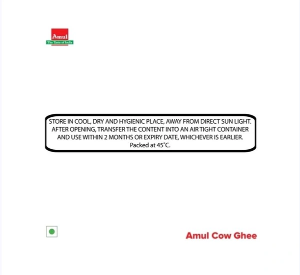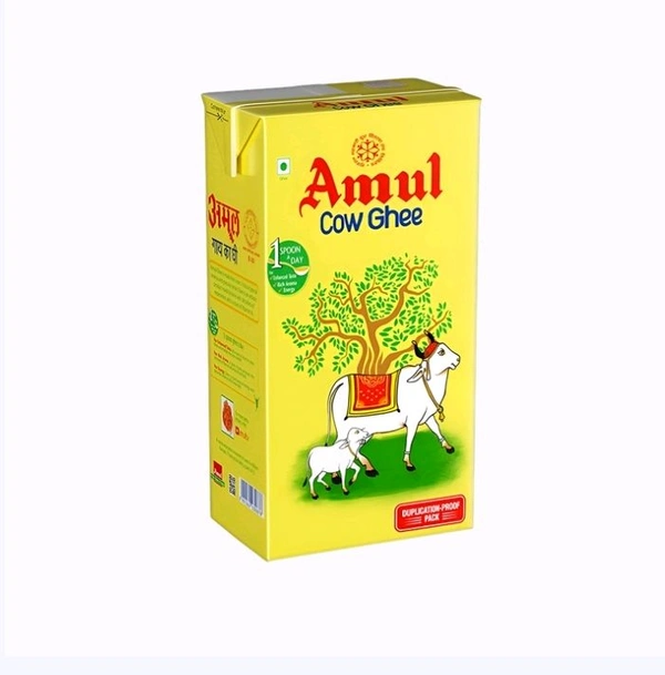 Processed from fresh cream of pure cow milk, Amul Ghee is a rich source of vitamin A, vitamin D, vitamin E, vitamin K. It is granular and rich in aroma and taste. Consumed with chapattis or used for tempering pulses, vegetables and rice, ghee brings a delectable flavour to food.
