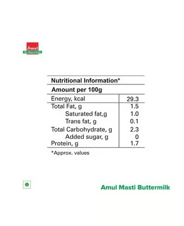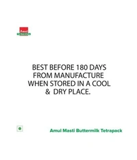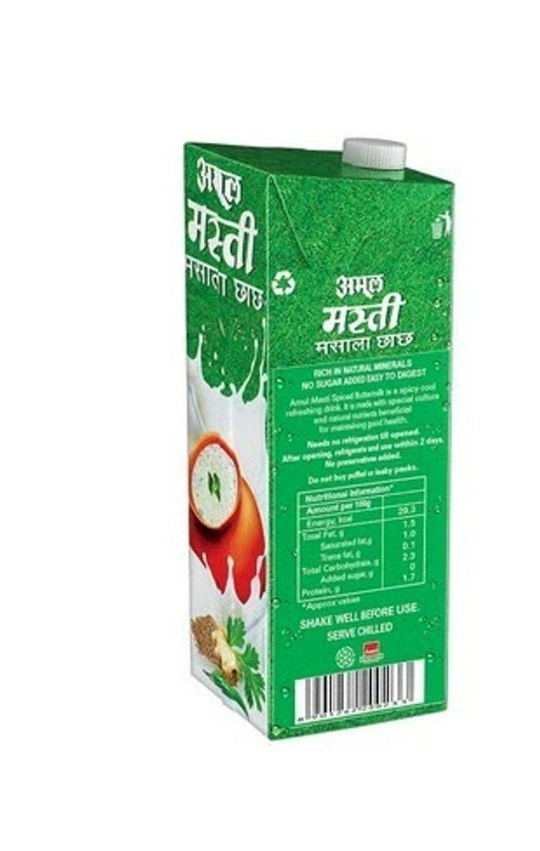 Amul Masti Spiced Buttermilk (Tetra Pak) is refreshing beverage. It is an easy to use low calorie drink that refreshes you with the goodness of nature.