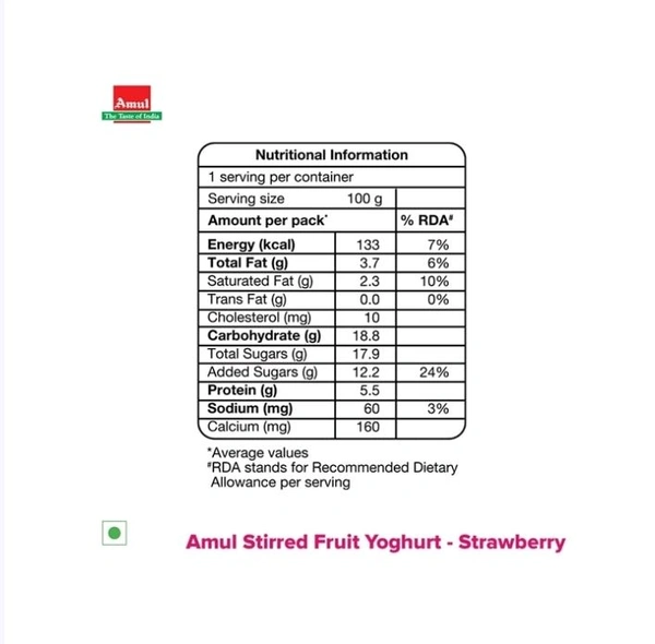 Amul Stirred Strawberry Flavoured Yogurt