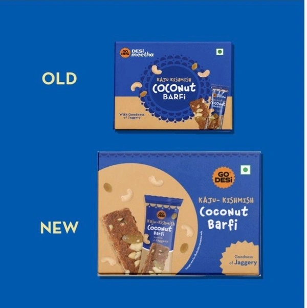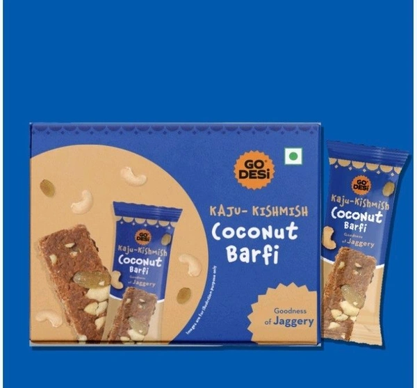 Kaju kishmish mouthwatering coconut barfi featuring the goodness of fresh coconuts, cashews, raisins, palm jaggery and lots of love. The ultimate desi delight. Made using 100% natural ingredients, this contains zero added colour, flavour, or preservative.