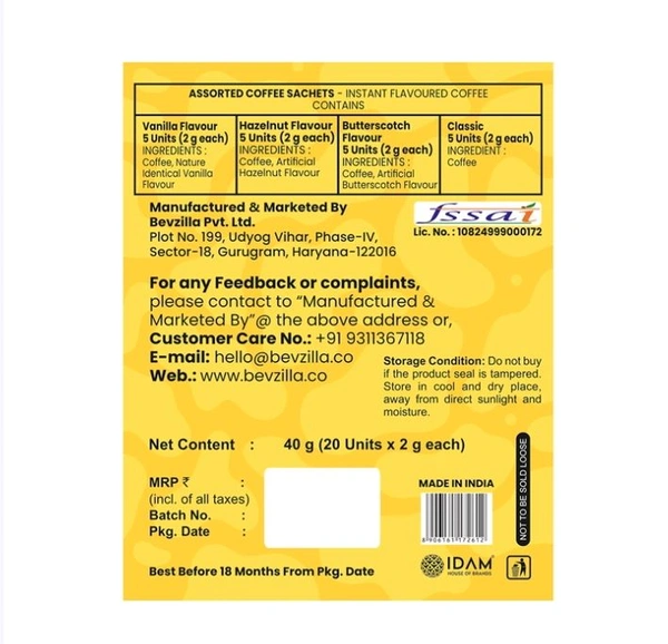Conveniently packaged in 20 single-serve sachets, this instant coffee comes in four delightful flavours: Hazelnut, Classic, Vanilla, and Butterscotch. Perfect for making Espresso, Latte, or Cappuccino, it offers a quick and easy way to enjoy cafe-style coffee at home or on the go.