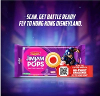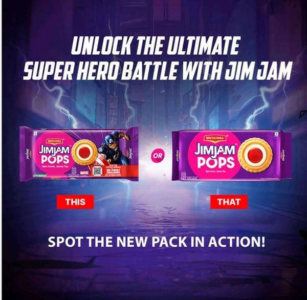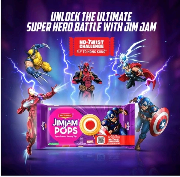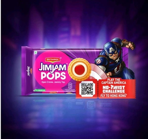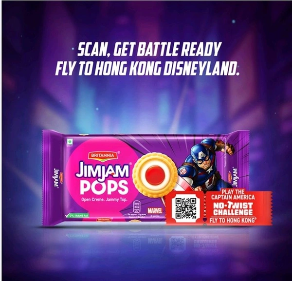 A biscuit innovation you cannot miss! Our first open creme biscuit from the Jim Jam family that comes with a crunchy base, vanilla topping and jammy center. Britannia's Jim Jam Pops is the biscuit of the future. Gone are the "twist" days. Now, No Twist, just lick and pop!