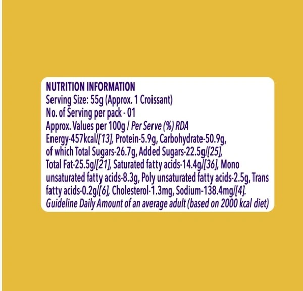 Treat your taste buds with this indulgent Britannia Treat Croissant made using the best flour from across the country, kneaded into the softest dough and baked to perfection. Every bite of the delicious treat gives the heavenly taste of triple choco in layers of soft, fluffy bread that will melt in your mouth, creating an irresistible experience. It is a unique twist on your everyday snack, perfect to curb mid-day cravings or midnight hunger pangs