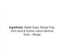 Imagery: The background is an artistic explosion of yellow and orange splashes, featuring realistic slices of ripe mango and green leaves to emphasize the natural fruit flavor.