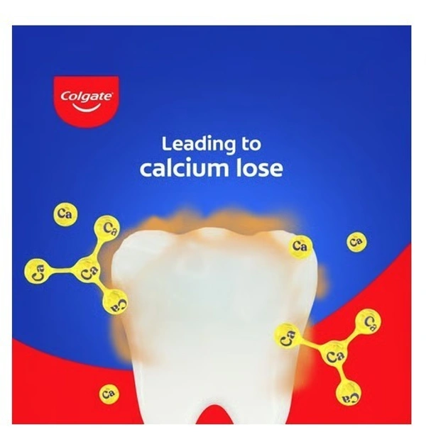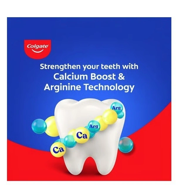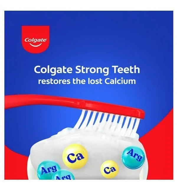 Paste hi Nahi, Daanto Ka Poshan! Our teeth lose calcium every day as we eat sugary or Junk foods and weaken over time. Colgate Strong Teeth has a unique Calcium Boost + Arginine formula which restores natural calcium back to your teeth and nourishes them. Resulting in 2X stronger teeth vs usage of regular fluoride toothpaste. Also helps prevent cavities, whitens teeth and freshens breath