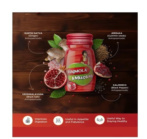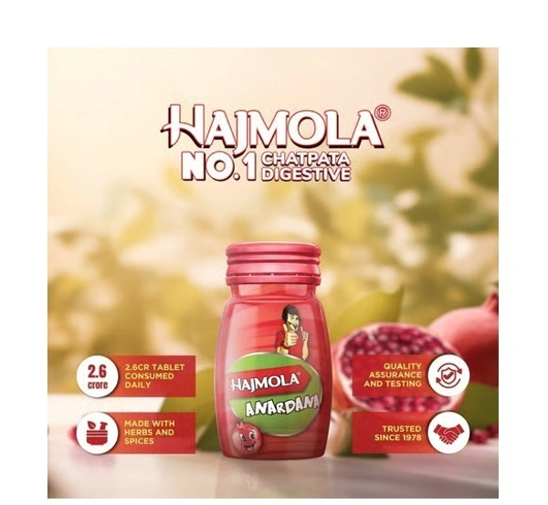 Hajmola tablets provides quick relief from flatulence and improves digestion. Not only does it get your digestive juices working better, it's also a useful laxative for children. Now relish the tasty, chatpata taste of Hajmola in 6 delicious flavors - Regular, Chatcola, Imli, Pudina, Anardana and Chatpati Hing. No meal is complete without the tasty digestive power of Hajmola.