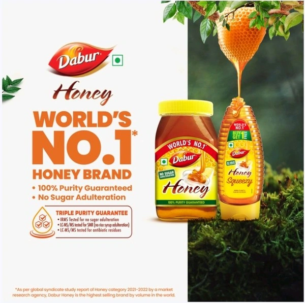 Do you want to boost your Immunity? Do you find it difficult to manage your weight? Do you want to give a healthy start to your day? Do you wish to improve your digestion and metabolism? If the answer to the above questions asked is YES, then you should definitely include Dabur Honey as a part of your daily regime. Dabur Honey is entirely sourced from Indian beekeepers and conforms strictly with all the 22 parameters mandated by FSSAI (Food Safety and Standards Authority of India) for testing Honey. In addition, Dabur Honey is also LCMS - MS tested for zero presence of antibiotics, as further mandated by FSSAI. It is also IRMS tested for zero added sugar and SMR tested for zero presence of rice syrup.