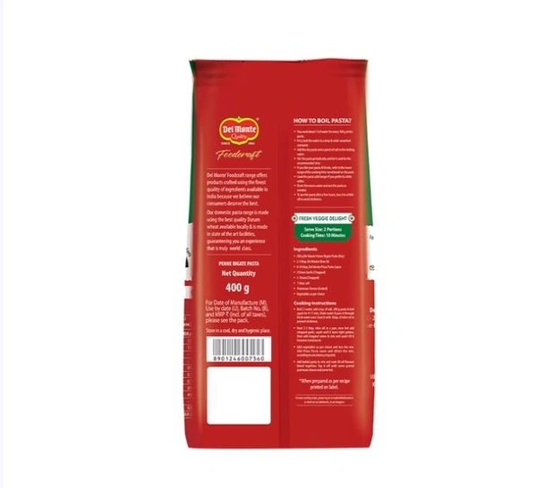 Make yourself some mouth-watering, delicious pasta with Del Monte Food Craft Penne Rigate Pasta. Just toss in some sauteed veggies and serve it hot, garnished with grated cheese, herbs, fresh parsley, black sliced olives or other toppings of your choice.
