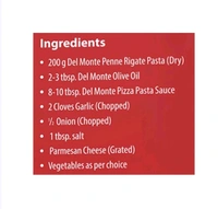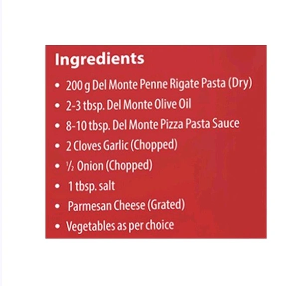 Make yourself some mouth-watering, delicious pasta with Del Monte Food Craft Penne Rigate Pasta. Just toss in some sauteed veggies and serve it hot, garnished with grated cheese, herbs, fresh parsley, black sliced olives or other toppings of your choice.