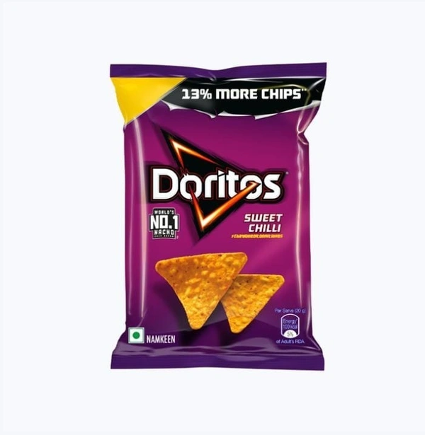 The great tasting bold snack with a perfect crunch and a spicy sweet chilli flavor. Doritos is the spark that ignites you to be bold. Tooth Rattling Crunch & Intense Flavours that ignite you to Seize the Moment & Release your inner boldness. If you're up to the challenge, grab a bag of Doritos Sweet Chilli tortilla chips and get ready for the experience. It's a bold experience in snacking and beyond.