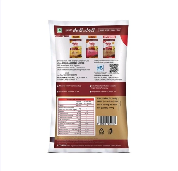 Emami Healthy & Tasty Kachchi Ghani Mustard Oil is the secret ingredient that transforms your everyday meals into something extraordinary. It adds a sprinkle of delightful aroma and a generous serving of mouthwatering flavor to your dishes. Our range of mustard oils cater to every taste bud out there. For the first time in India, you can now buy mustard oil as per your desired taste.