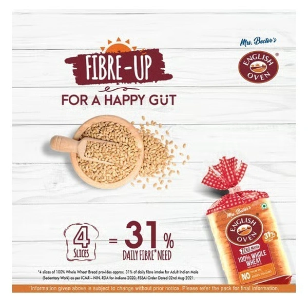 English Oven Zero Maida 100% Whole Wheat Bread is a healthy sliced bread made from 100% whole wheat atta instead of refined flour (maida). It is designed for people looking for a high-fiber, nutritious, and wholesome bread option for everyday meals like sandwiches, toast, or breakfast.