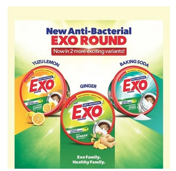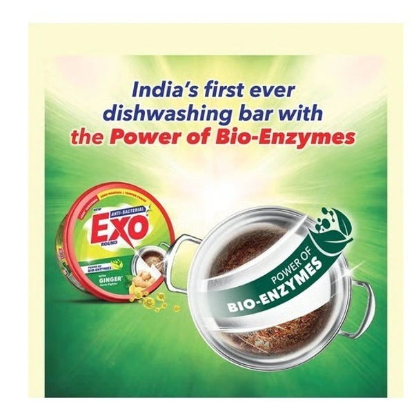 Wash your utensils spotless clean with Exo Round Dishwashing Bar. It acts on tough grease and difficult stains and comes with an 'Anti-Sogg' formula that prevents excessive melting of the bar, making it last for long.