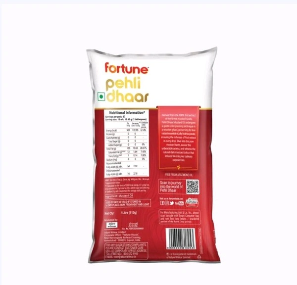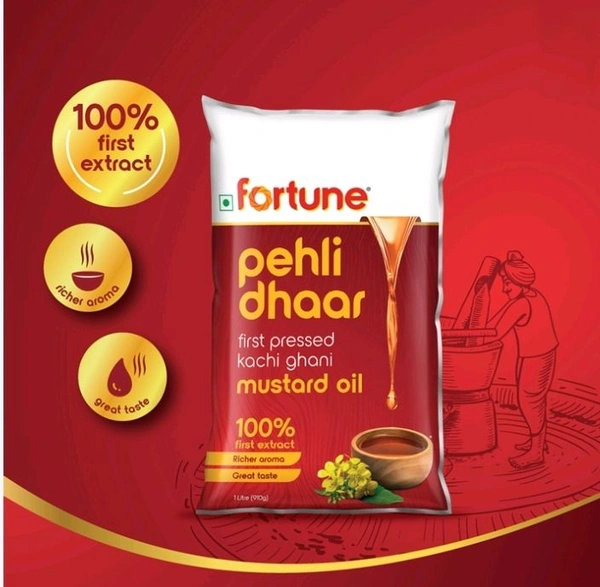 Fortune Pehli Dhar Kachi Ghani Cold Pressed Mustard Oil (Pouch) (Sorisha Tel)