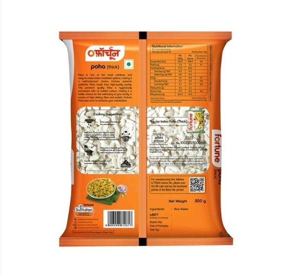 Poha is one of the most nutritious and easy to make breakfast in India making it a well balanced choice. Now, Fortune brings you the Poha made of authentic Chhattisgarh rice. It is hygienically processed and a premium quality product. Fortune Poha is a perfect choice for the health of you and your loved ones. Poha is also a source of dietary fibre and protein.