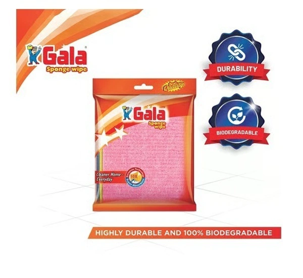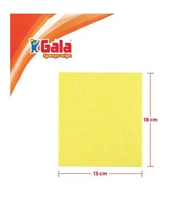 Gala Sponge Wipe is made up of cellulose sponge with cotton mesh. It is Used for wet wiping of table, kitchen platform, fridge etc. and absorbs water 10 times of its weight. It is lint free and hence can be used even on glass, mirror, television etc