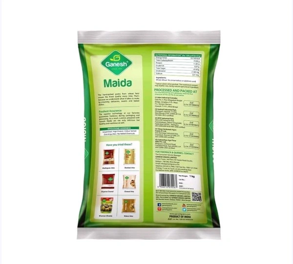 Ganesh Premium Maida is made from the freshest and finest quality of wheat that is handpicked before it arrives at the mill. Dough prepared with Ganesh Maida has the property of retaining extra moisture which makes it soft. Maida is used extensively for making fast foods, baked goods such as pastries, bread, several varieties of sweets, and traditional flatbreads. White flour regulates glucose/sugar in your body.
