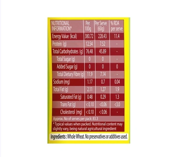 Ganesh Whole Wheat Chakki Atta is ground from the best-quality wheat grains to give you fresh and 100% pure wheat flour. It also contains minerals like selenium, iron, phosphorous, manganese, and copper that are essential for our body. Whole wheat flour is also rich in dietary fibre and complex carbohydrates, that is beneficial for diabetic people. Use it to make soft, fluffy, and delicious rotis and phulkas