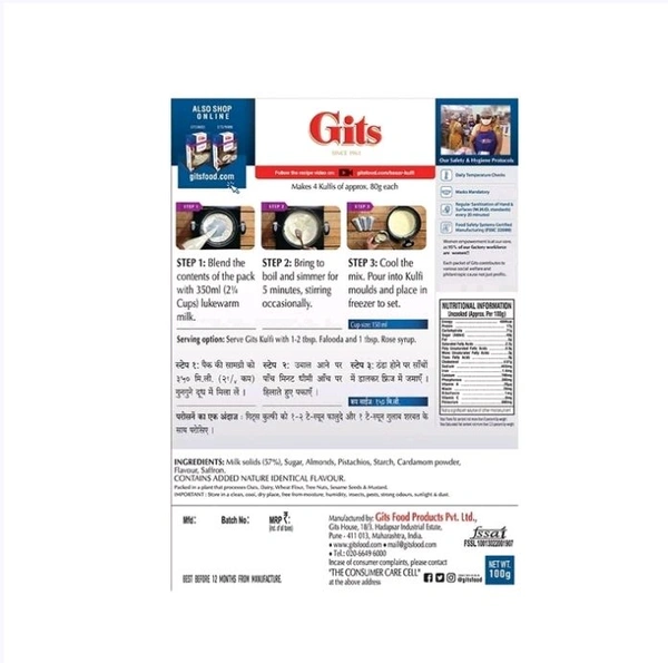 Authentic Taste: Formulated by Gits, a trusted brand in Indian desserts since 1963.