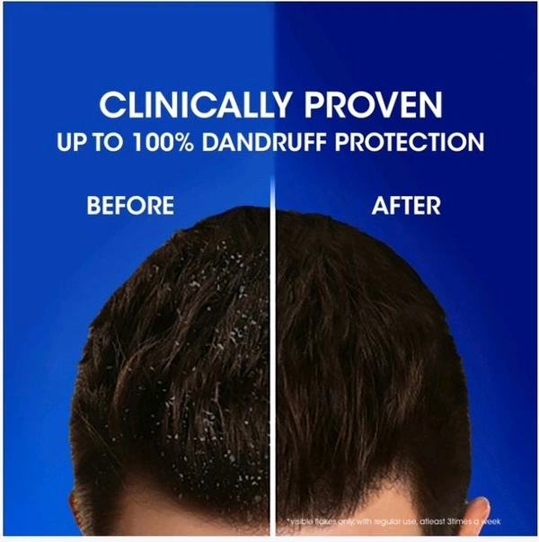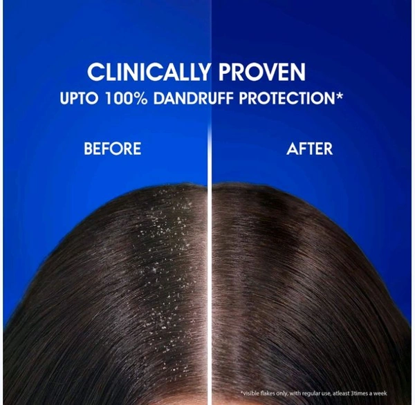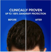 Clinically Proven: The listing showcases "before and after" results, claiming up to 100% dandruff protection.