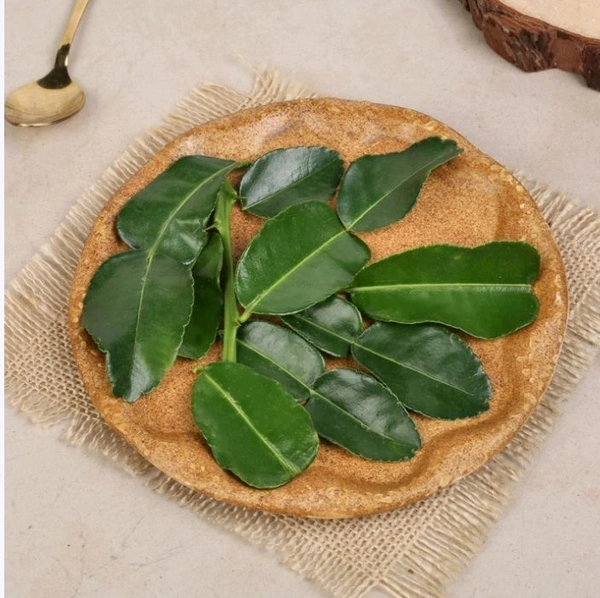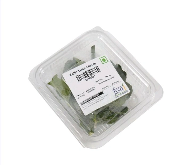 Kaffir Lime Leaves (Makroot) are hand-picked, fresh, and glossy. Store in the refrigerator. Origin: India. Perfect for authentic flavors.