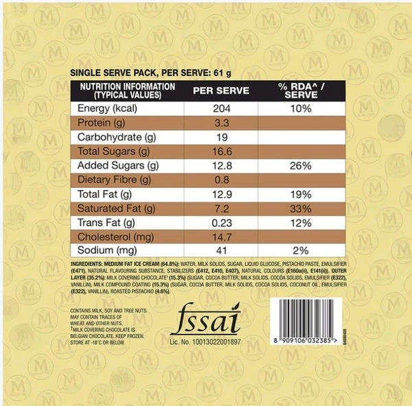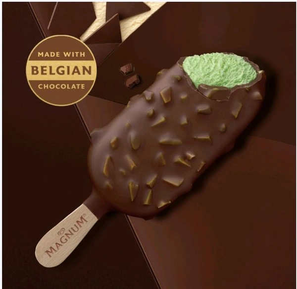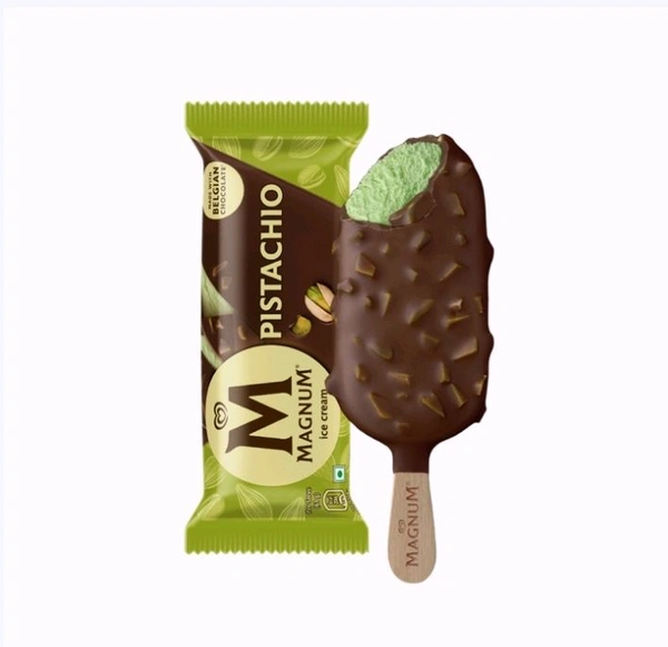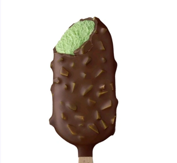 Rich cracking belgian chocolate studded with roasted pistachio pieces surrounding velvety smooth pistachio ice cream.
