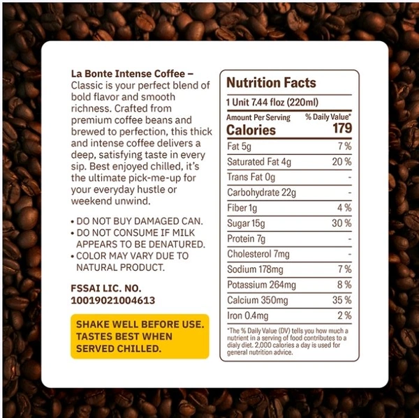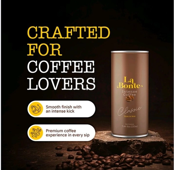 La bonte cold coffee classic thick & bold 220ml (pack of 4) offers a rich, creamy coffee experience. Made with premium coffee and milk, it delivers a bold flavor and smooth texture. Ready-to-drink and perfect for on-the-go refreshment or anytime indulgence.