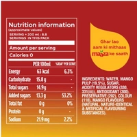 This mango fruit drink is made from hand-picked Alphonso mangoes, known for their rich flavor and natural sweetness. Packed with nutrients and Vitamin D, it offers a refreshing, fruity, and tangy taste that can be enjoyed throughout the year.