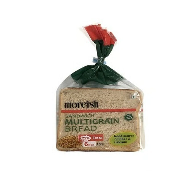 Moreish Sandwich Multigrain Bread is a healthy sandwich bread made from a blend of whole wheat flour and different grains, giving it a good balance of nutrition, fibre, and taste. It is soft, fresh, and ideal for everyday meals like sandwiches, toast, or breakfast with butter and jam