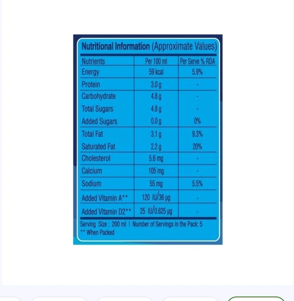 Start the day on a healthy note with Mother Dairy Toned Milk (Tetra Pak). A perfect blend of health and taste, it can be used in the preparation of tea, coffee, sweets, curd, buttermilk, etc.
