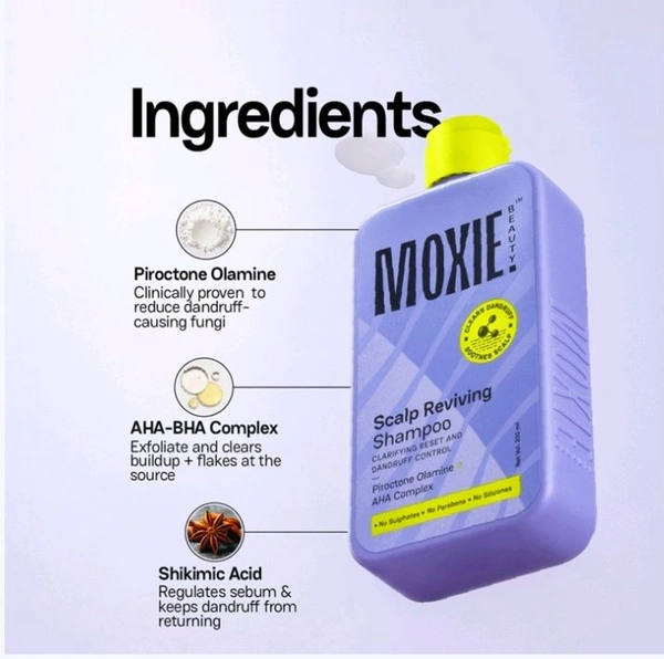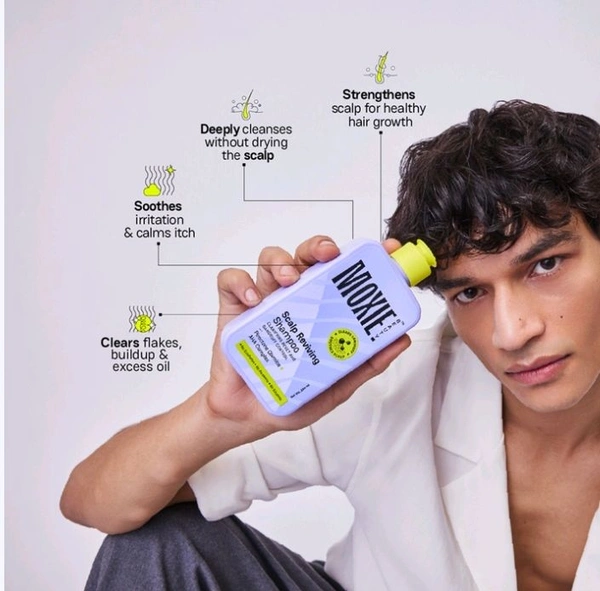 Moxie Beauty Scalp Reviving Shampoo is formulated to gently cleanse while energizing and rebalancing the scalp for healthier, stronger hair. Powered by a blend of Polyglutamic Acid, Panthenol, and Guar Hydroxypropyltrimonium Chloride, it helps lock in hydration, smooth hair fibers, and improve manageability