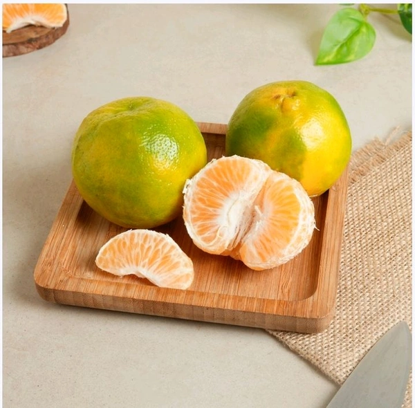 Nagpur oranges or Nagpur Santra are juicy with a vibrant orange color pulp and thin skin. They are delicious eaten fresh, juiced, or used in desserts and salads. Nagpur oranges are prized for their refreshing taste and are a favorite during the citrus season in India. Their jacket color is usually green but sometimes develop orange patches as their harvest season ends.