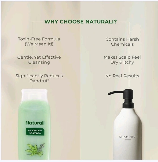 Experience up to 100% dandruff relief with Naturali Anti Dandruff Shampoo, infused with Hemp Oil and Sage Extract sourced from India. It works to calm inflammation and reduce irritation, helping to prevent hair fall associated with dandruff. Enjoy a healthier, more balanced scalp and revitalised hair with every use, leaving your hair feeling clean, refreshed, and flake-free.