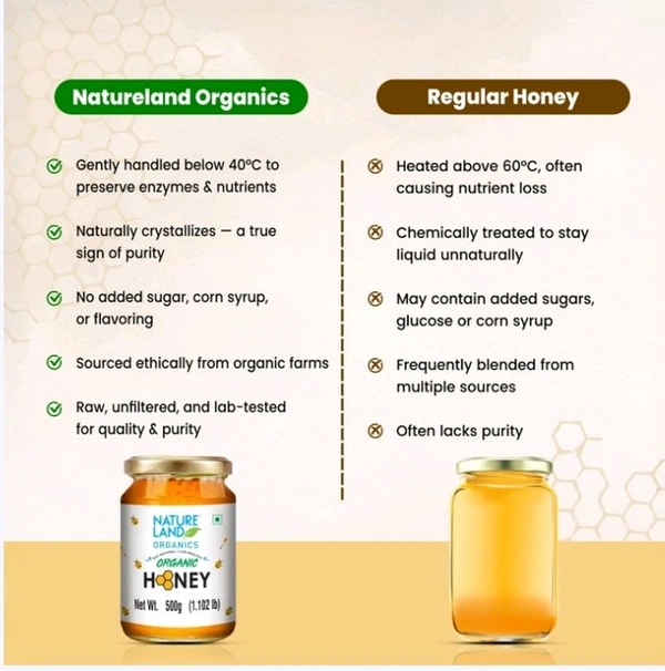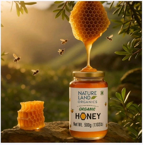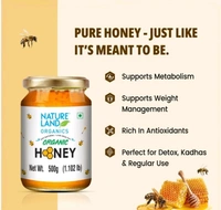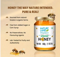 Natureland's Organic multiflora nectar honey collected from Himalayan organic forests and processed and packed in hygienic conditions. In Hinduism, honey (Madhu) is one of the five elixirs of immortality (Panchamrita). The Vedas and other ancient literature mention the use of honey as a great medicinal and health food, a most assimilable carbohydrate compound and most effective aliment to generate heat, create and replace energy, and furthermore, to form certain tissues. This honey, besides, supplies the organism with substances for the formation of enzymes and other biological ferments to promote oxidation. It has distinct germicidal properties.