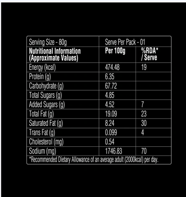 This ultra-hot, fiery snack is crafted for true spice lovers. Packed with intense heat and bold flavor, it delivers a challenge with every bite. Safe to eat but extremely spicy-handle with caution and enjoy only if you dare. Not recommended for children or the faint-hearted.