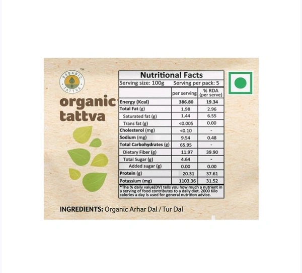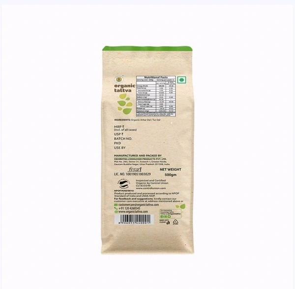 A pulse that is used in daily recipes, Organic Tattva Arhar Dal/Toor Dal is a delicious dal that enhances the flavour of your dishes, it has been processed from the finest-quality pulses, this dal is also rich in dietary fibre that improves digestion and reduces weight gain, use it to make dal or sambar recipes that go well with rotis or rice, rich source of vegetarian protein, is low in saturated fats and is hence very healthy for you.
