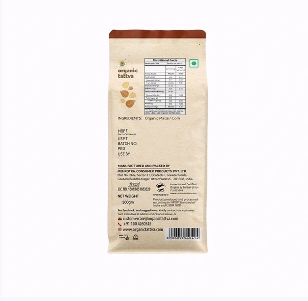 Organic Tattva Maize Flour (Makka Atta) is without any pesticides and chemicals.Maize is processed In-house in our state-of-the-art facility to make Maize Flour (Makka Atta)
