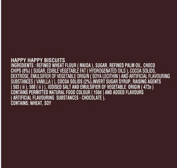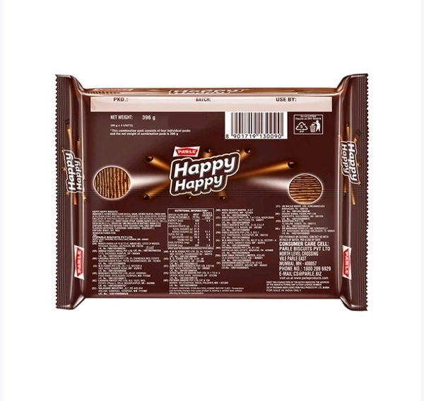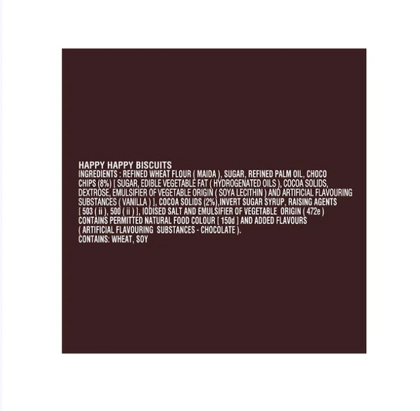 Parle Happy Happy Choco Chip Cookies are crispy with delicious chocolate chips. These chocolate chip cookies are made from the finest ingredients and hygienic packaging ensures they stay fresh over a period of time.