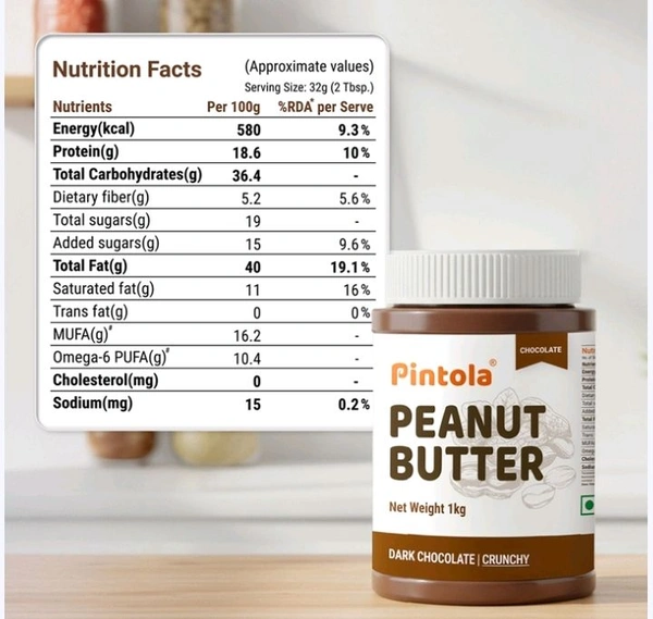 Pintola Choco Peanut Butter Is A Delicious Combination Of Premium Dark Chocolate Paste And Peanuts. This Is Healthy Chocolate Spread With The Goodness Of Protein. Unlike Other Chocolate Spreads Available In The Market, This Product Contains Lesser Sugar And More Healthy Stuff.All Pintola's Products Are Made Up Of The Finest Grade, Fresh And Nutritious Ingredients From An ISO 22000 Certified And Fssai Approved Factory.