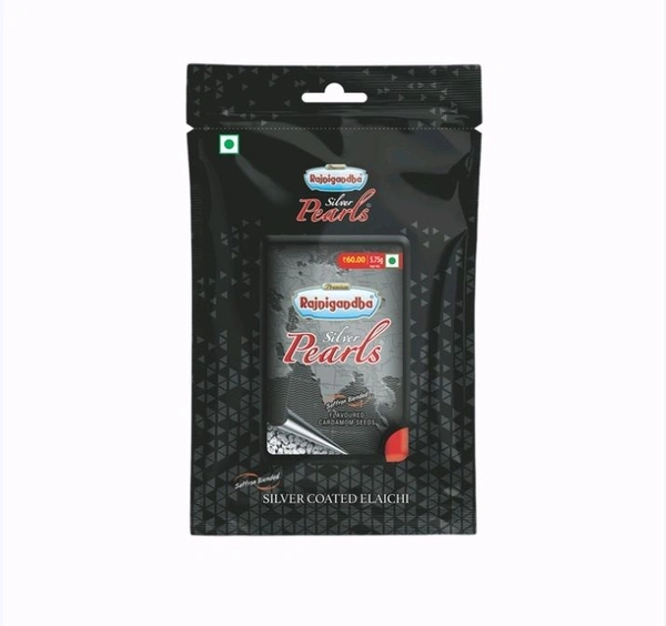 Rajnigandha Pearls are handpicked cardamom seeds that are blended with the best quality saffron and are coated with glittering silver leaves.