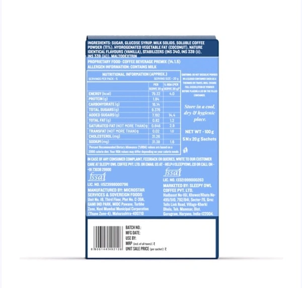 Sleepy Owl French Vanilla Latte Premix Instant Coffee