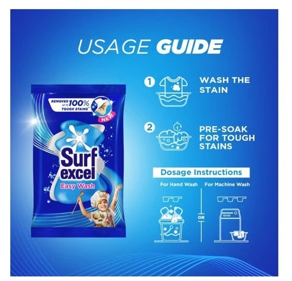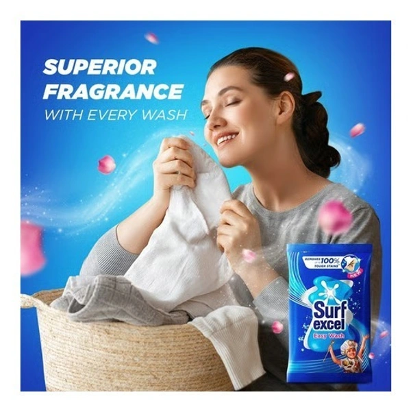 Surf Excel Easy Wash Detergent Powder is a high-performance laundry detergent specially formulated to remove tough stains quickly and efficiently. Its superfine powder dissolves easily in water, allowing the cleaning agents to penetrate deep into fabric fibers and lift stubborn dirt and stains without leaving residue.