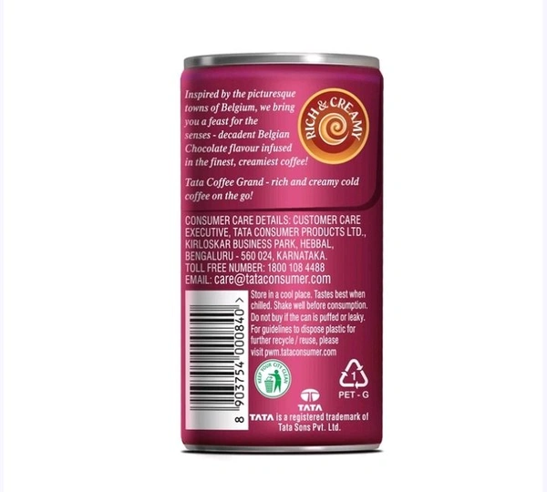 Discover a feast for the senses with Tata Coffee Grand Cold Coffee-Belgian Chocolate. Inspired by the picturesque towns of Belgium, this luxurious cold coffee combines decadent chocolate flavor with rich, creamy cold coffee to create a beverage that's truly indulgent. Whether you need an instant cold coffee fix or a relaxing sip of cold coffee, Tata Coffee Grand Cold Coffee-Belgian Chocolate.