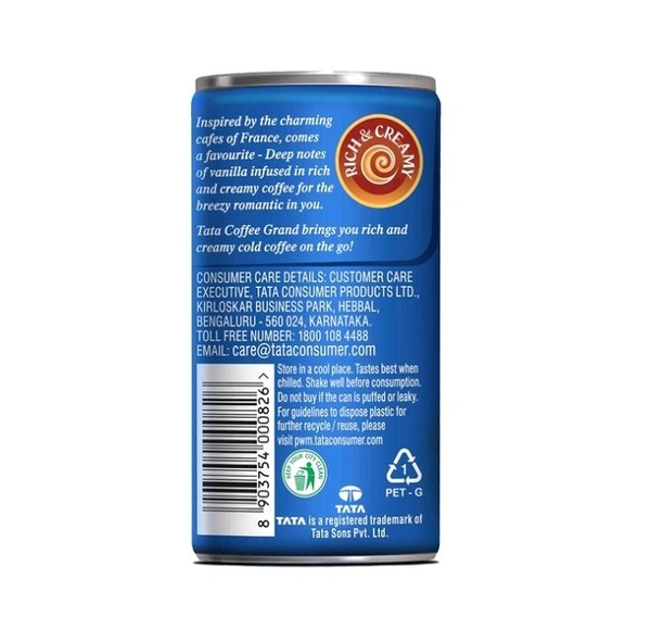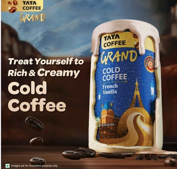 Savor the taste of rich and delicious Tata Coffee Grand Cold Coffee-French Vanilla. Inspired by the charming cafes of France, this rich and creamy cold coffee delight combines deep notes of vanilla with robust coffee, creating a perfect beverage for the breezy romantic in you. It offers a smooth, indulgent experience ready to enjoy on the go.