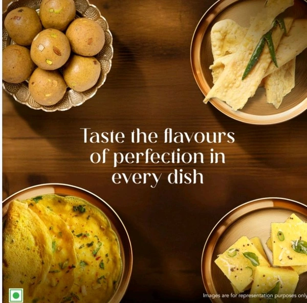 Tata Sampann Fine Besan made from 100% unpolished chana dal is all you need in the kitchen to enjoy an all-natural, authentic taste of in all your favourite recipes. It lets you indulge in dishes like besan ladoo, dhokla, kadhi, fafda, sev and other namkeens. Recommended by Sanjeev Kapoor, Tata Sampann Besan undergoes a 5 step purity process to ensure that besan in every packet you buy is uniform and of premium quality. Karo Goodness ki Shuruaat!
