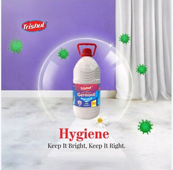 Trishul Germonil White Floor Cleaner is a powerful pine oil-based cleaner and disinfectant. Formulated with a homogeneous mixture of phenolic compounds, pine oil, and emulsifier, it has a white to off-white shade and ensures super-efficient cleaning. It effectively removes dirt and germs, keeping floors hygienic, fresh, and spotless.