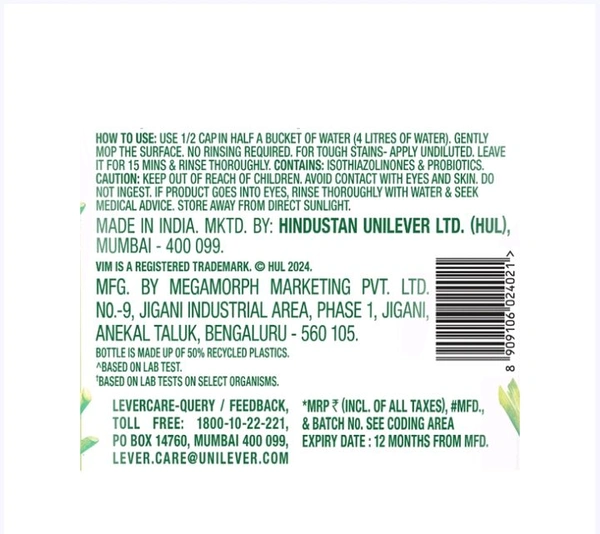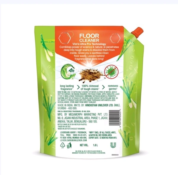 All thanks to it UltraPro Technology that combines the power of science & nature! With UltraPro Technology, Vim floor Cleaner penetrates deep into stains & dirt and dissolves them from within effectively. This ensures 100% removal of tough stains! Whether its dried sticky stain of spilled over food like sambhar, chutney, dal or sticky drink stain of coffee