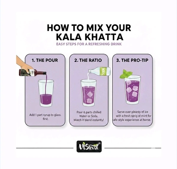 Discover the authentic taste of traditional kala khatta with this premium syrup made with real kala jamun. This delightful beverage concentrate perfectly balances the distinctive flavour of kala jamun with aromatic cumin and black salt, creating a uniquely refreshing drink. Sweetened naturally with stevia, this sugar-free syrup is an excellent choice for those watching their sugar intake.