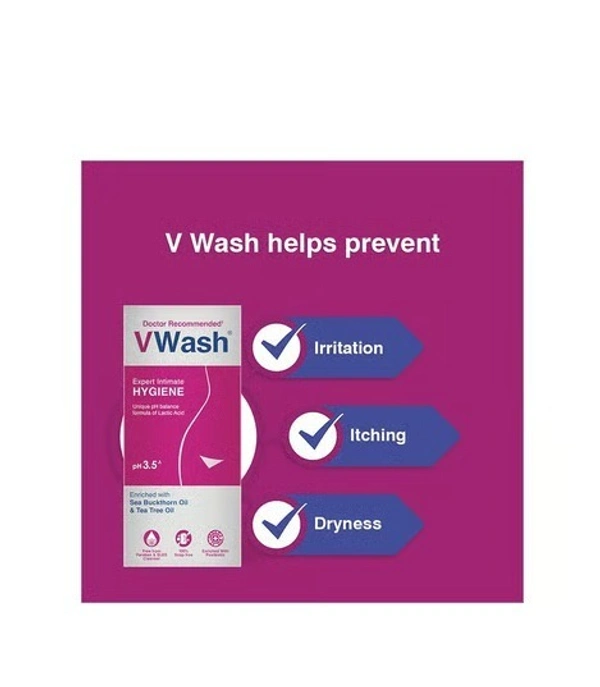 The best defence against any vaginal discomfort is prevention. Protect your most delicate area with daily use of a special product – VWash PLUS. With a pH of 3.5, V Wash restores to prevent irritation, itching and unpleasant odour in the intimate area. The vagina has a natural protective layer which is acidic in nature, to help prevent infection. This layer is maintained when good bacteria called lactobacilli produce Lactic acid (or milk acid), which maintains the acidic environment at a pH value of 3.5 to 4.5. This promotes the growth of lactobacilli, inhibiting the presence of harmful bacteria and preventing infection. A healthy vaginal flora requires a pH of 3.5. Most soaps are alkaline in nature which have a pH value of 8 & above. The daily use of soap to cleanse the vaginal area upsets ideal pH balance of the vagina. This leads to vaginal discomforts like dryness, irritation & itching and could eventually lead to vaginal infections. VWash PLUS has lactic acid which restores vaginal pH balance and is enriched with sea buckthorn oil which contains an abundance of vitamins, minerals, antioxidants & amino acids. Daily washing with VWash PLUS leaves a fresh sensation & maintains healthy vaginal flora. It also helps prevent unpleasant odour & irritation in the intimate area. It is Paraben & SLS/SLES free. VWash Plus is usable during periods as well. Now don’t just wash, VWash PLUS.
