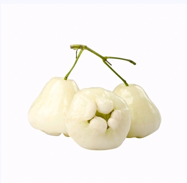 The fruit is round or pear-shaped, with a thin skin that can range from green to red when ripe. The flesh is crisp, juicy, and mildly sweet, often described as having a refreshing taste similar to a watermelon or pear. Water apples are commonly eaten fresh or used in salads, juices, and jams.